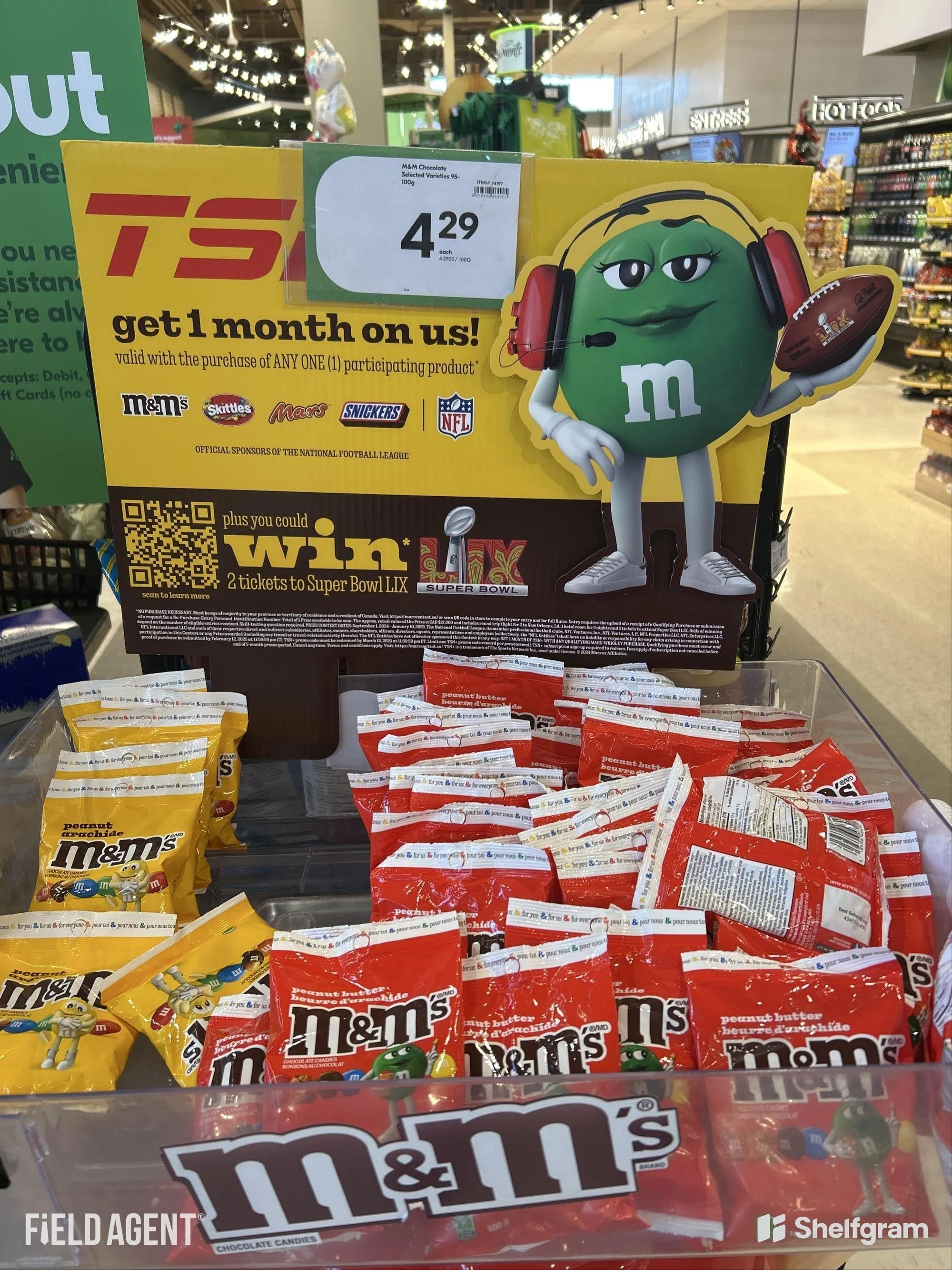 Year after year, the M&M’S x NFL program remains one of our biggest initiatives. This year, we have partnered with M&M’S, the NFL, and TSN+ to create an exciting giveaway program that will have every fan rushing to their local grocery store to grab a pack! Since this program is running across Canadian markets, you will see in-store point-of-sale materials in both English and French to cater to Canada’s bilingual shoppers.