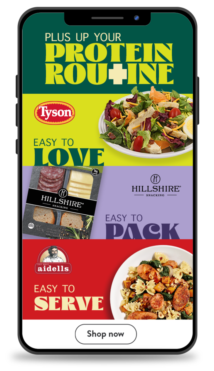 The campaign introduced a fresh perspective using vibrant colors and mouthwatering food photography for a more sophisticated solution. To promote basket building, the visual strategy was designed to accommodate multiple brands from the Tyson Foods portfolio across various digital formats. The program increased sales across the full portfolio during the Q1 time period.