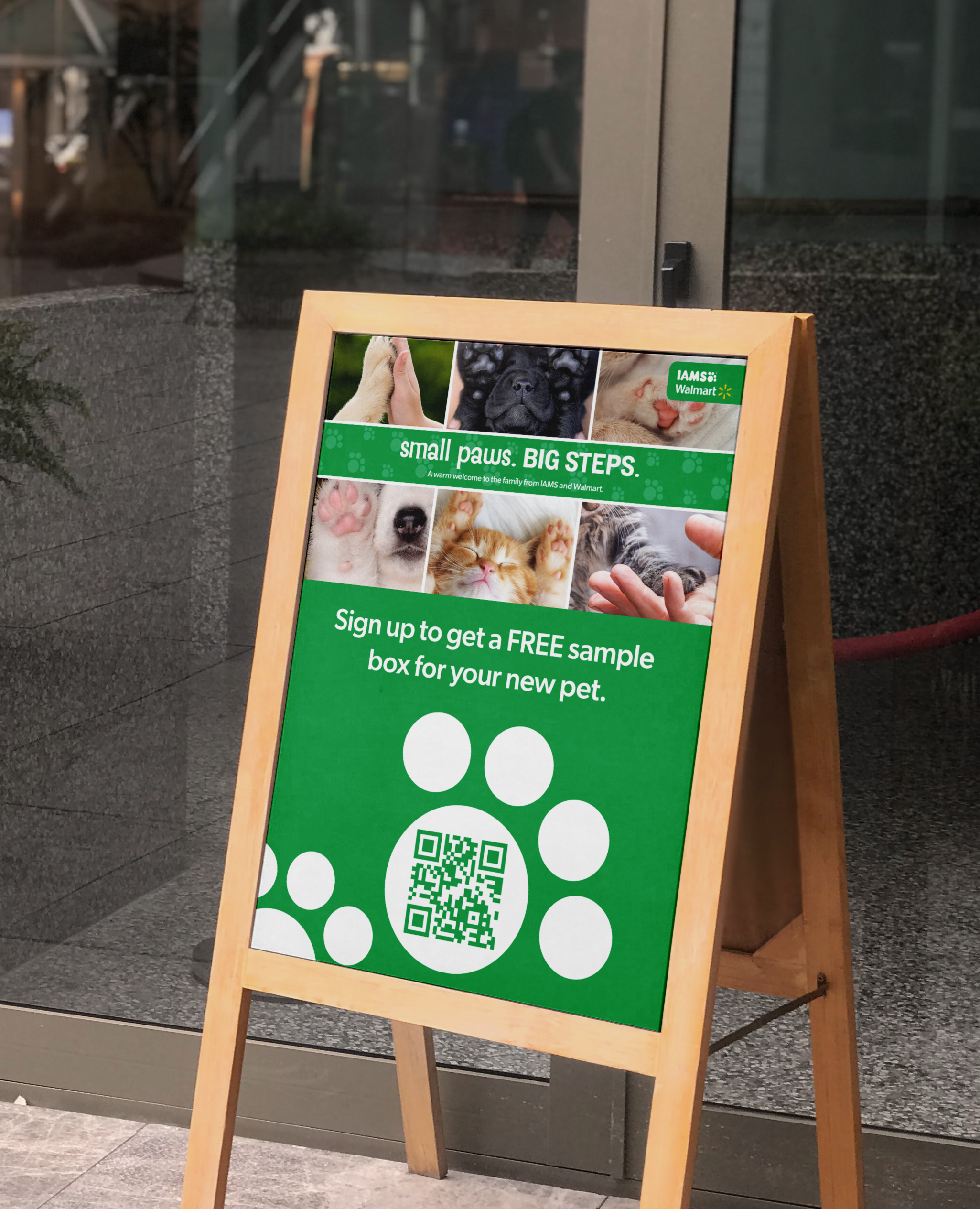 Research indicates that pet owners tend to remain loyal to the brand they start with, feel overwhelmed when becoming new pet parents, and view the process of finding the right brand as a challenge. Looking to attract and convert those brand loyalists, the “small paws. BIG STEPS.” program was developed to introduce IAMS to shoppers when it matters most.