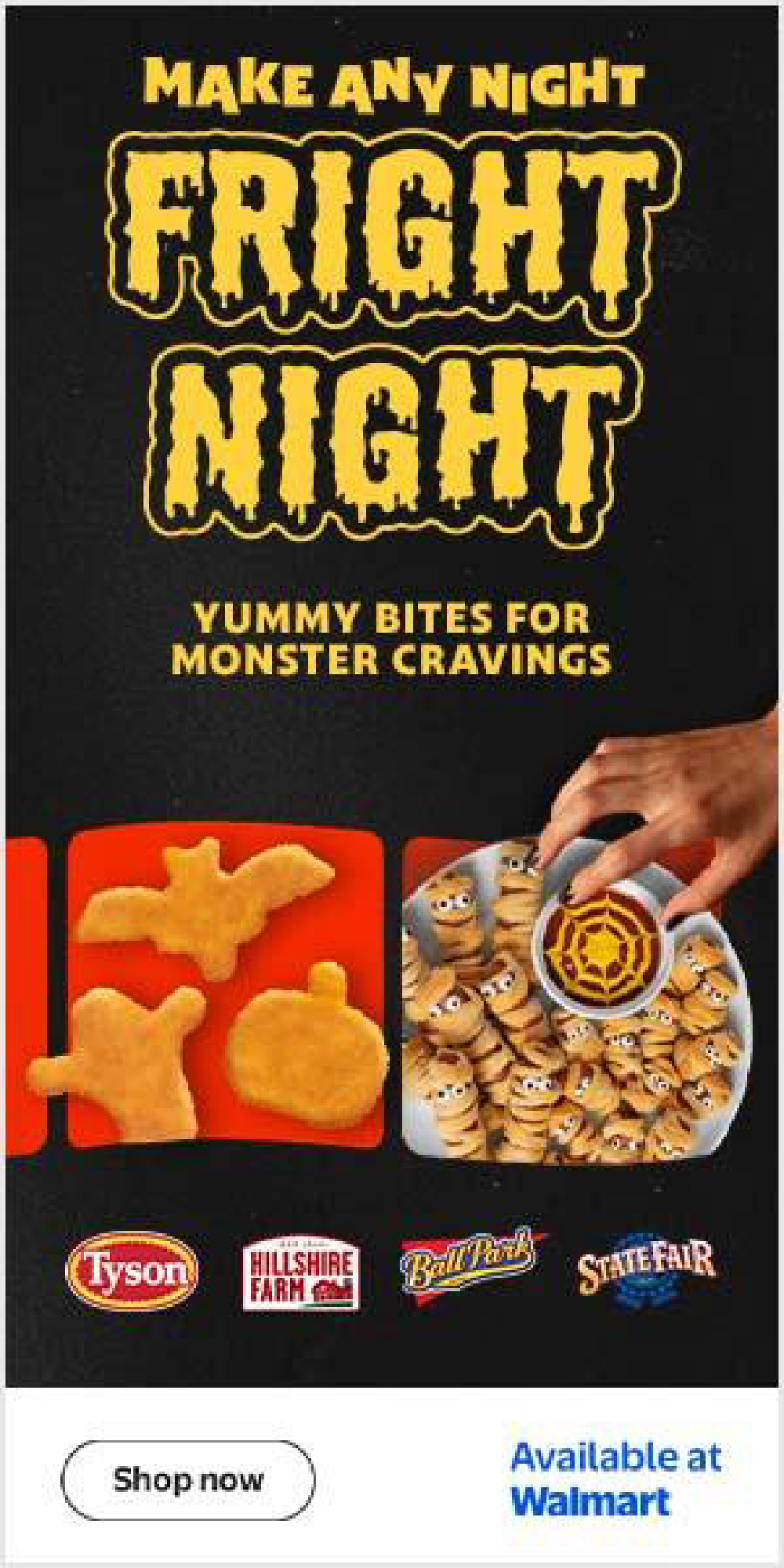 When people think of Halloween, they often picture one night filled with candy. With sweets in the spotlight, savory foods aren’t top of mind, leaving brands like Tyson overlooked. That’s why the Tyson Foods Halloween campaign aimed to stand out by offering savory solutions beyond Halloween night.
