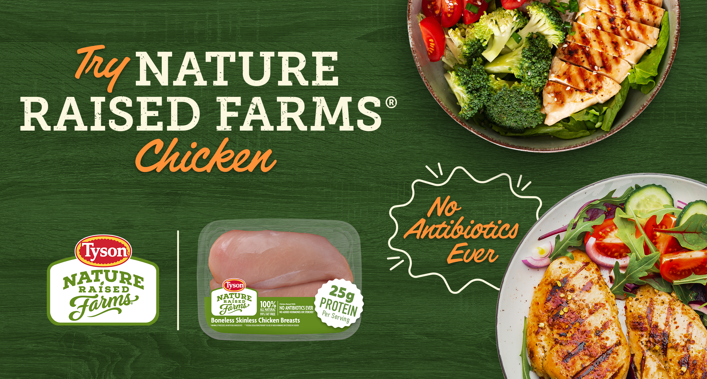 The Tyson Nature Raised campaign was created in response to Walmart's urgent need to replace Perdue products on their shelves. This request from the retailer put Tyson in need of developing a marketing strategy specifically showcasing their antibiotic-free chicken.