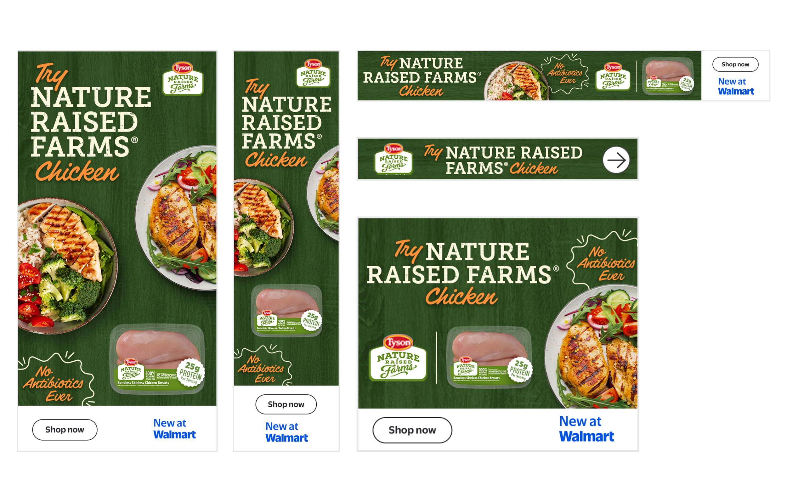 The campaign successfully targets health-conscious shoppers and creates a personalized visual language for the product line. The design incorporates rustic textures, appealing food photography, and a natural color palette, all of which convey a farm-fresh aesthetic that complements the new line of 100% all-natural chicken. Ads were quickly featured across Walmart's digital platforms to raise awareness of this new product offering.