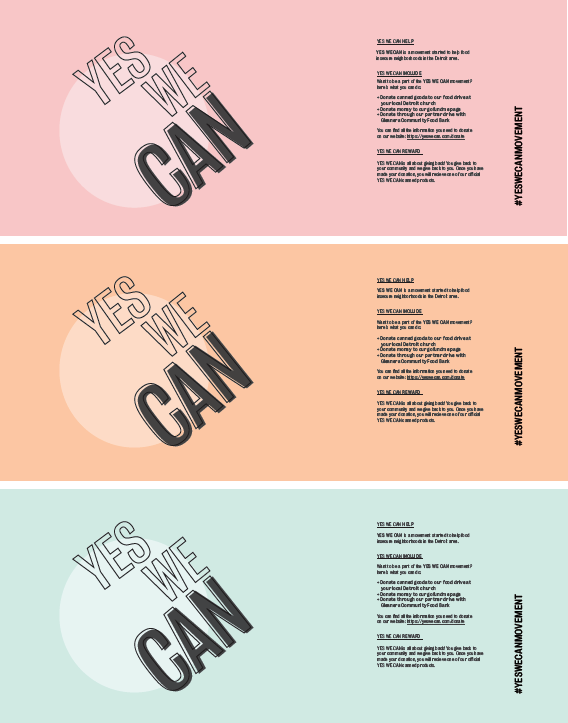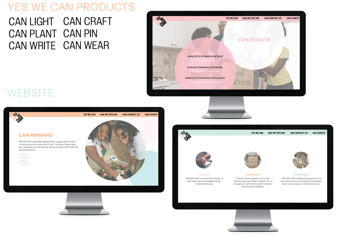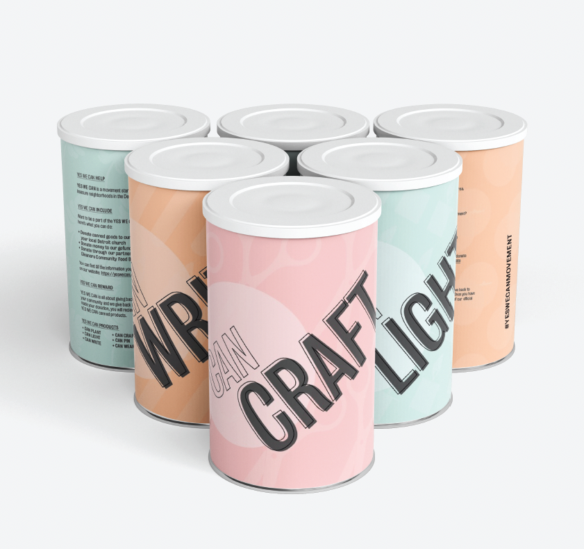 Based on research into food access in local Detroit neighborhoods, the "Yes We CAN" community outreach program was developed to combat food scarcity through a give-back incentive. The program provides food to residents and accepts donations in the form of canned goods, pantry-safe items, or cash contributions. To encourage larger donations, a tiered prize system was implemented; however, anyone who donates at least $5 worth of goods or cash will receive a "giveback can" filled with branded merchandise and prizes. Essentially, this is a modernized can drive—more visually appealing and a lot more enjoyable for everyone involved!